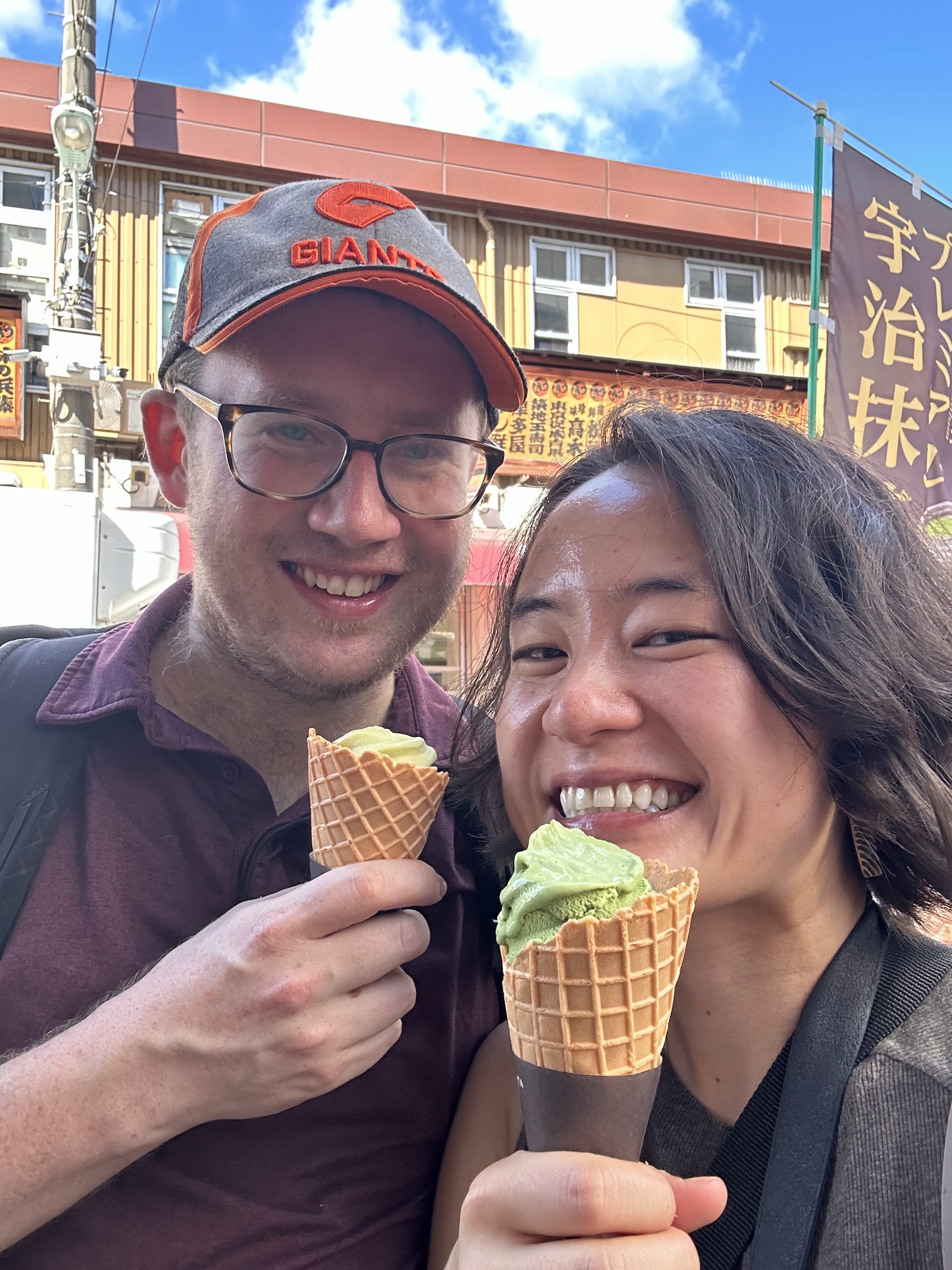 Tsukiji outer market is pretty cool. It’s in the Ginza district, adjacent to the seaport of Tokyo and it consists of mostly stalls with street food, produce, and restaurants. This used to be where the tuna auctions were held and the fish were sold, before they moved it to a new facility and man-made island, Toyusu market. We totally did not trust that we were getting a good deal when we saw that the soft drinks you could get from the vending machine were marked up 100-300%. We had a fish cake, unagi (eel), soft serve ice cream, and scallops.