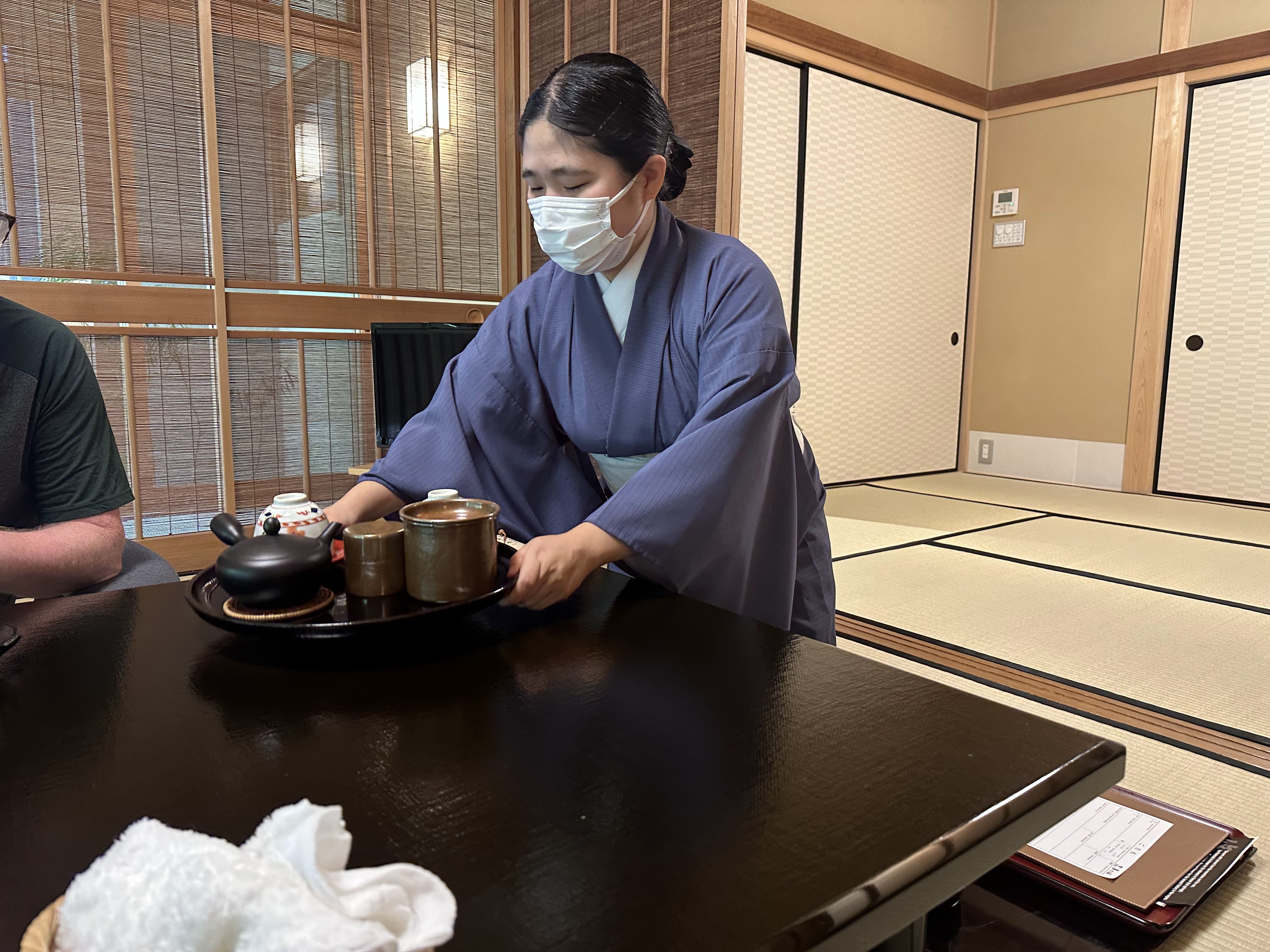 Nao was our professional battler/server who elegantly served our meals in our own suites. Her movements were so graceful, and she kneeled every time she meticulously placed every bowl in front of us for the 2 hour meals that were served. She seemed so great. Her movements were very aesthetic as she would gently grab her sleeve to point to explain various offerings.