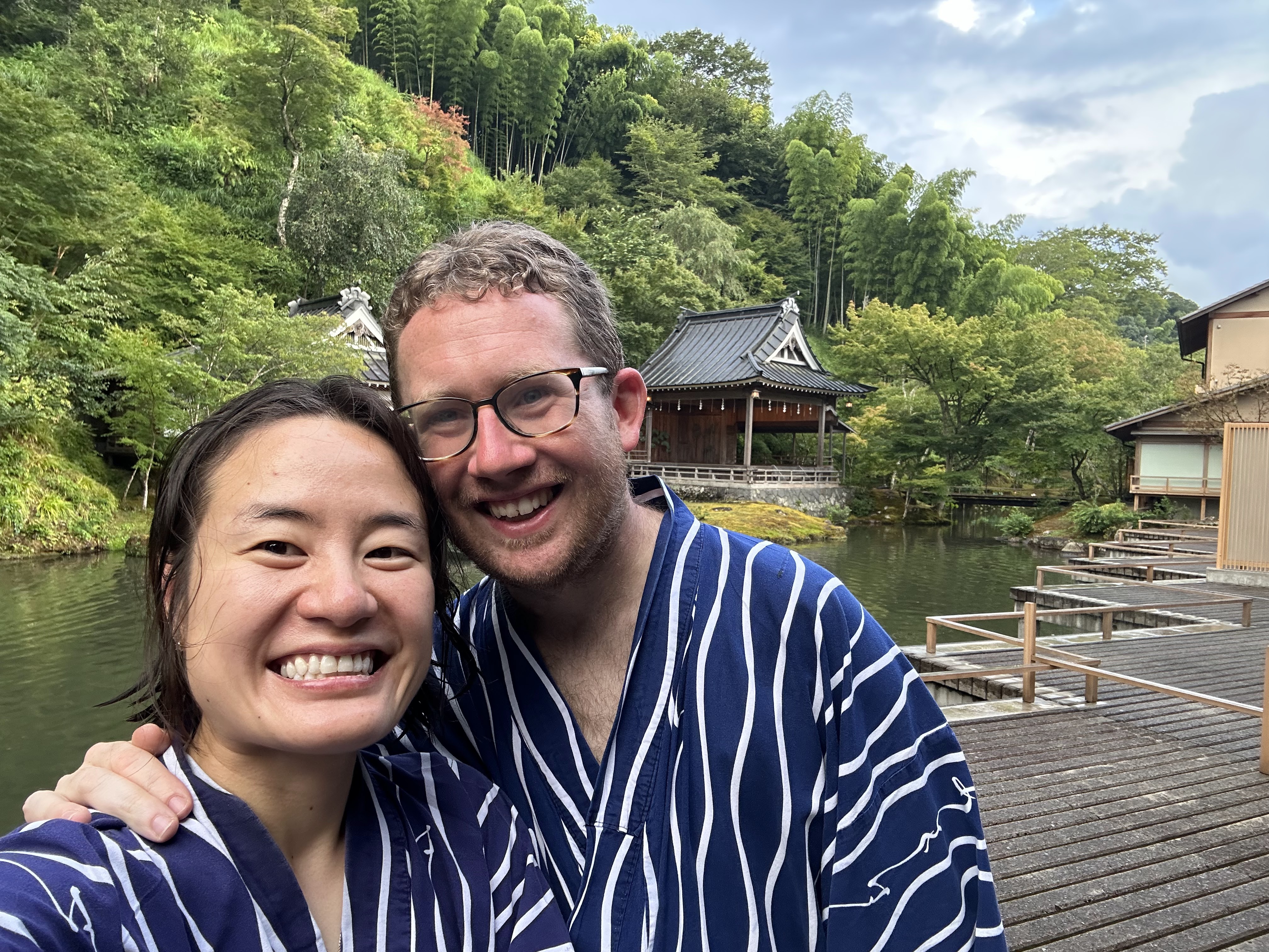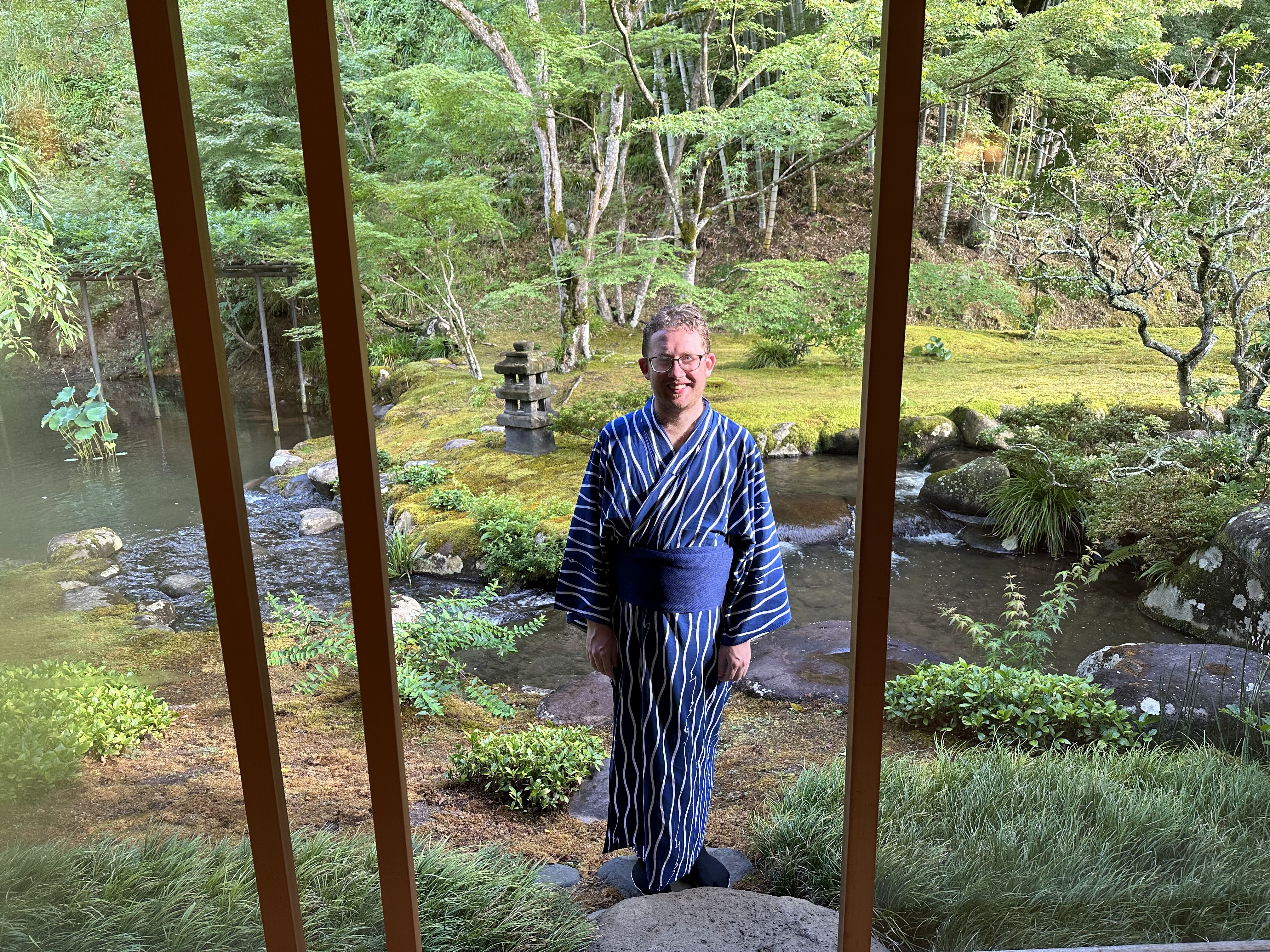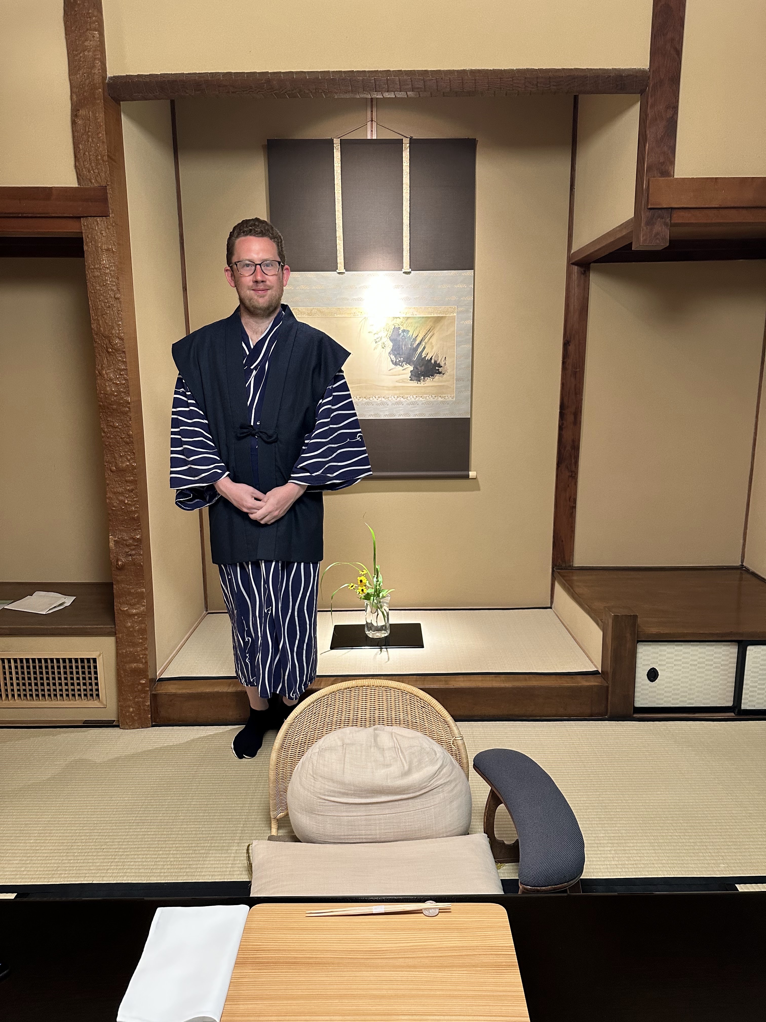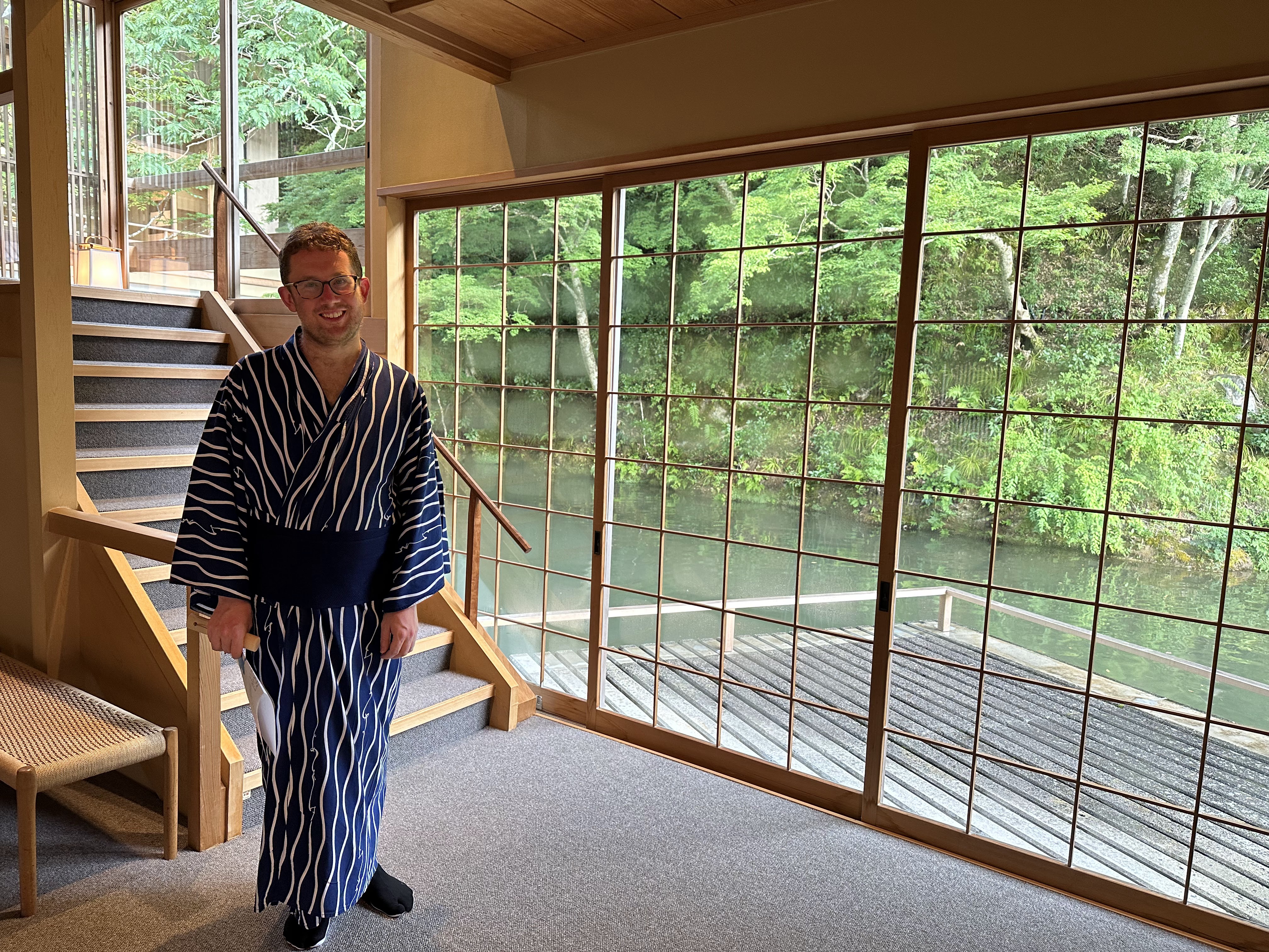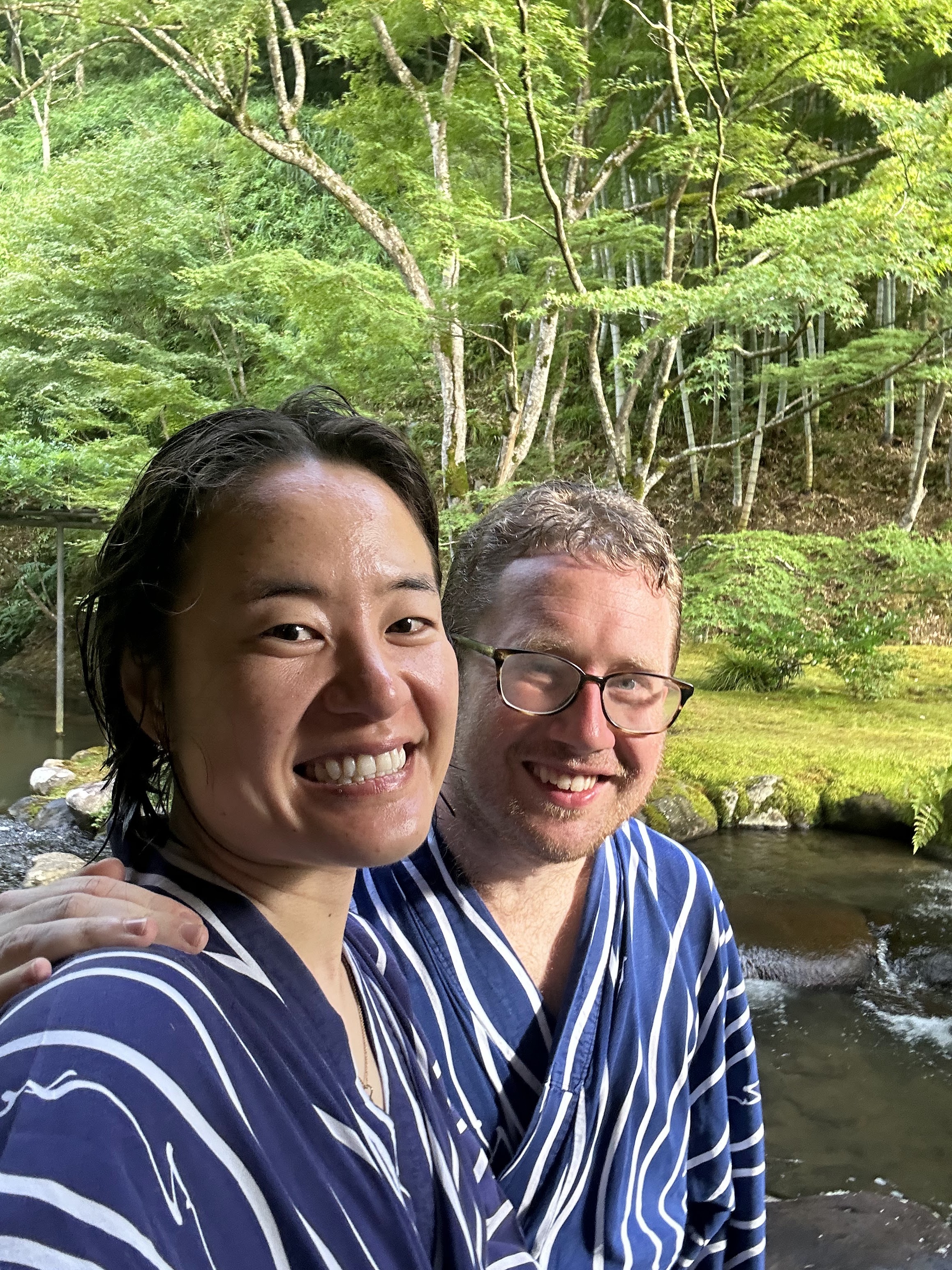 Japanese ryokans are stylistically incredible and steeped in timeless traditions. I’ve stayed in fancy resorts in Hawaii, and in comparison, the quality and uniqueness of Asaba just blew my mind. The floors are covered with tatami mats, and the walls and ceilings were lined with aromatic hinoki cypress panels. This infused the whole place with the soothing smell of cedar mixed with straw. All the windows and doors could slide all the way into the wall. Our suite was multiple rooms that were subdivided by beautiful sliding screens. Our suite opened to the Japanese garden in front of a small stream and a water fall, with cypress and Japanese maple trees that were bent like a bonsai. They provided us with yukatas, or unlined summer kimonos, and we wandered around the premises taking pictures with them on, feeding the many golden koi fish that lived in the small lake at the center of Asaba. It was incredibly tranquil, the guests were spaced out such that each enjoyed privacy and would hardly intersect (unless you were in the communal bath).