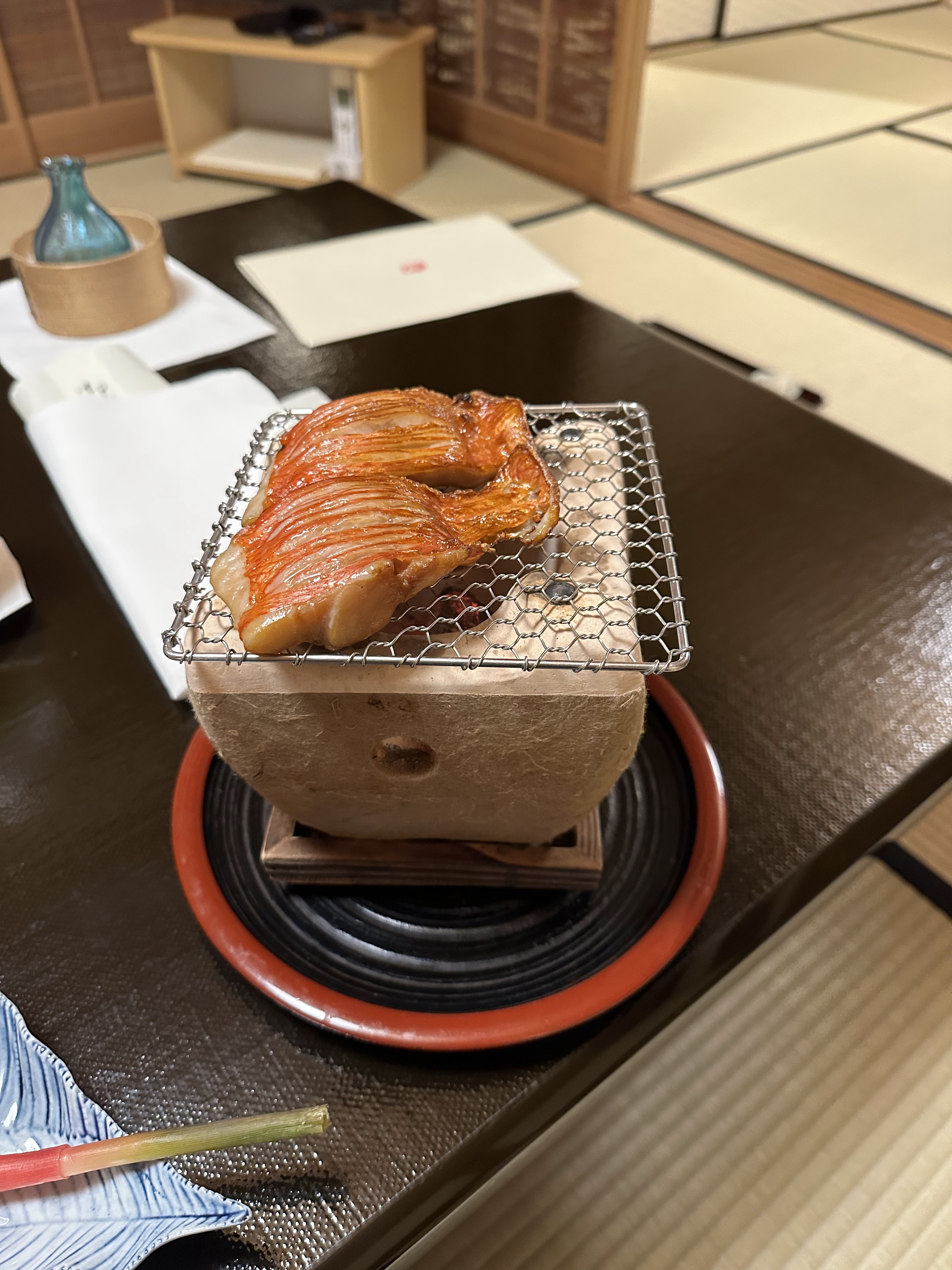 And oh my god the food! We had abalone, grilled snapper, clam miso soup, eel. Turtle soup, tiny zucchini, new chicken, jellied vinegar with crab, young ginseng, and more. That corn fritter showed up again. The breakfast also took over an hour to serve as well.
